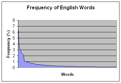 Brown University did a famous study called the Brown Corpus about how frequently we say each type of English word. For example, if we take a book or newspaper article, 0.0954% of the words will be the word "through." What is the most frequent English word? The word "the" makes up 6% of all the English words we use.
